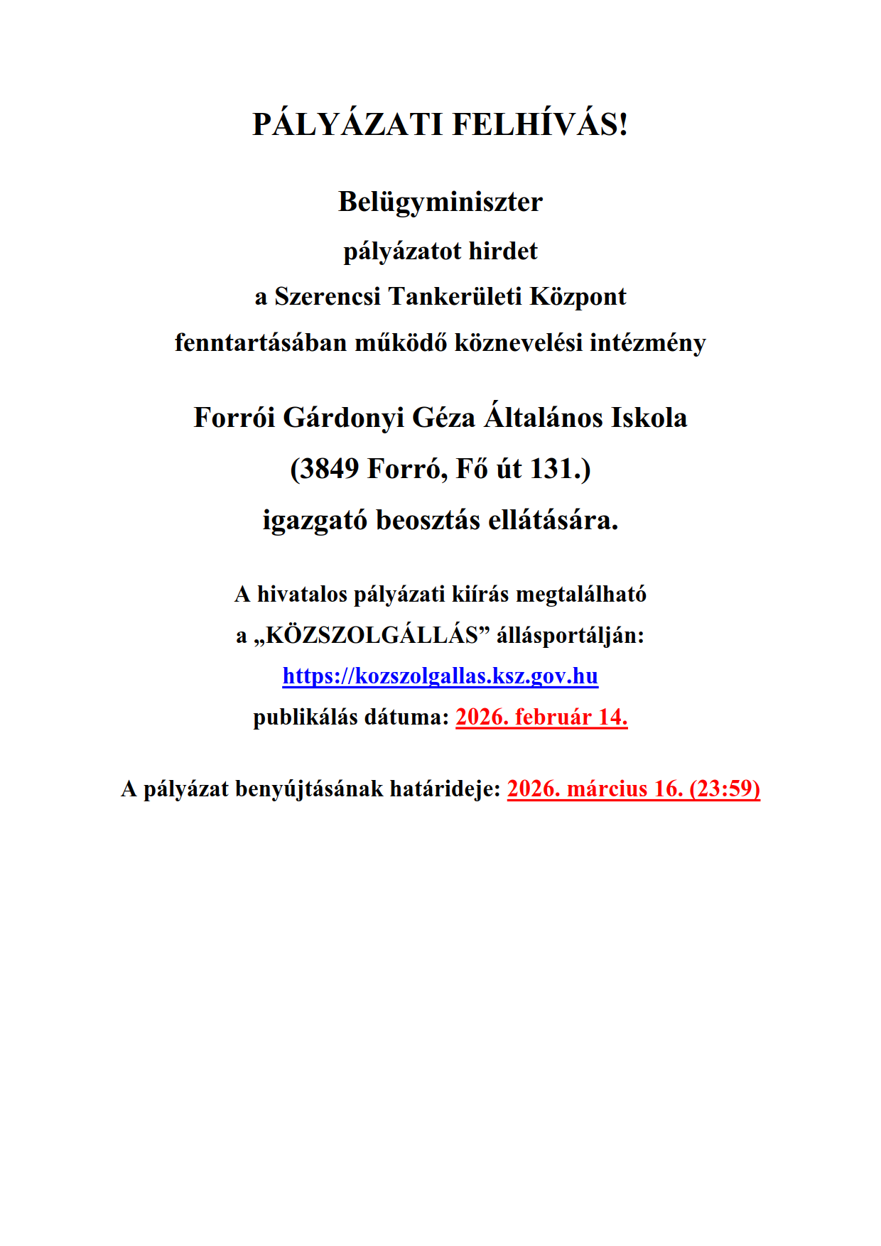 PÁLYÁZATI FELHÍVÁS!